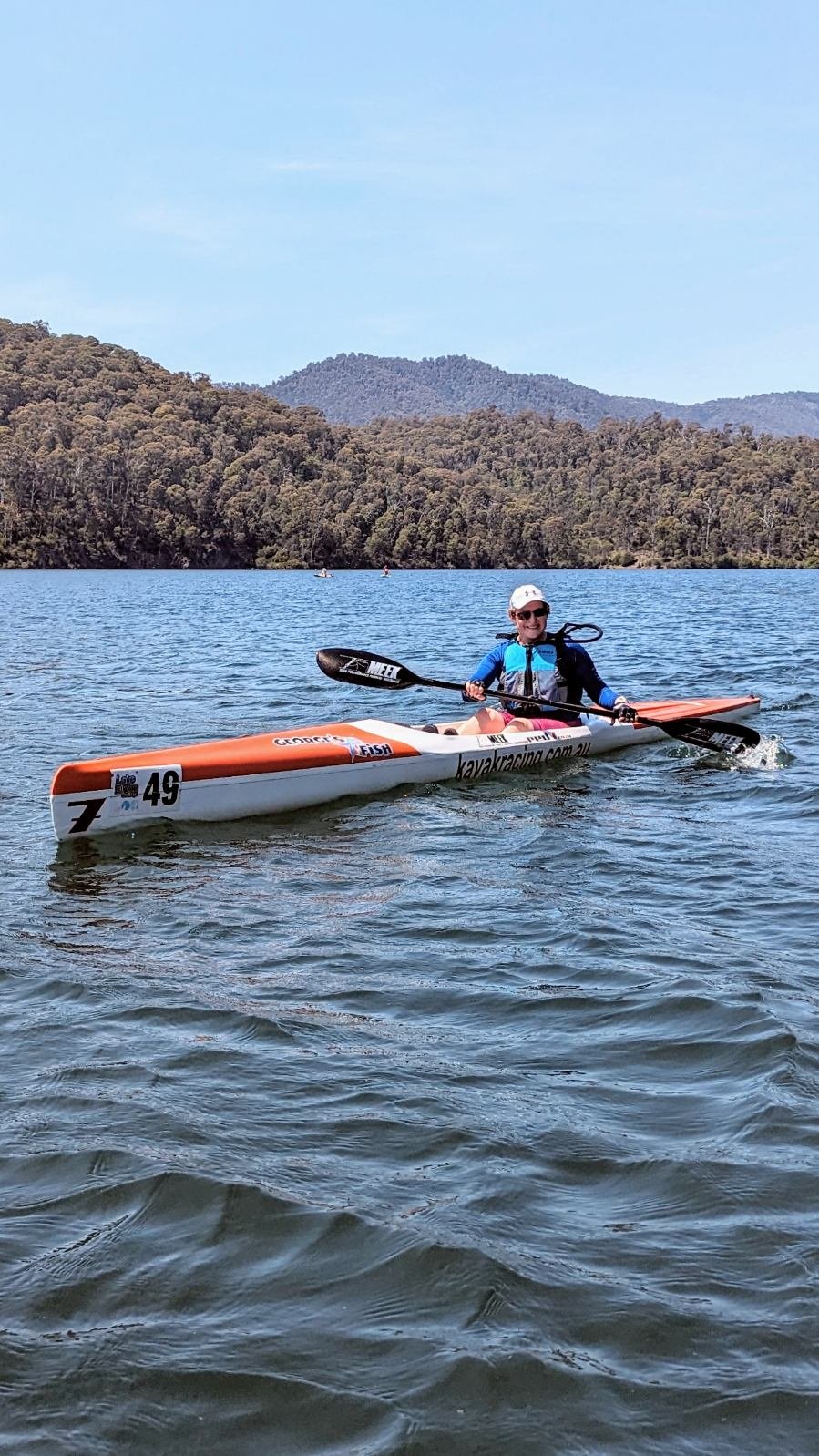 The lake is relatively flat, but if the wind picks up it can get choppy like any lake. Boat selection is up to you, sit-in or sit-on-top will all be suitable, just make sure you feel stable to race. The lake is filled with water straight from the mountains so a swim will be very refreshing. At some points the course is close to the bank, but other sections it's 50 metres, these are the points where the safety boats will hang out to assist if necessary.